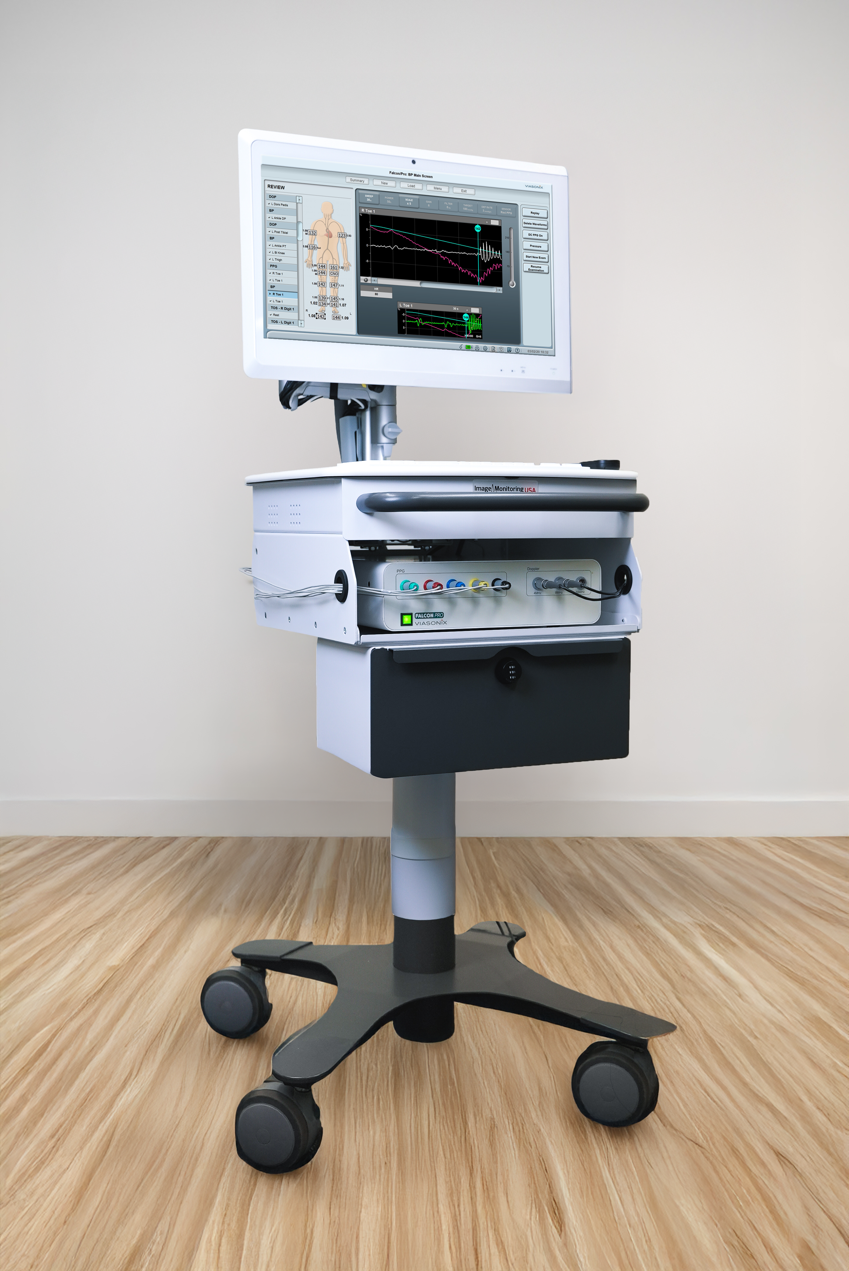 The clinically and widely accepted technique for assessing arterial disease of the legs is by using a CW Doppler standard in The Falcon physiologic vascular system. At Image Monitoring USA, we proudly supply cutting-edge physiologic vascular systems to the American vascular market.